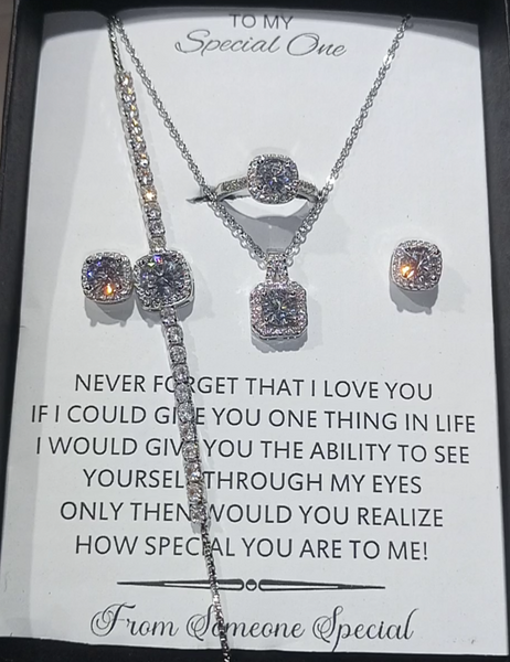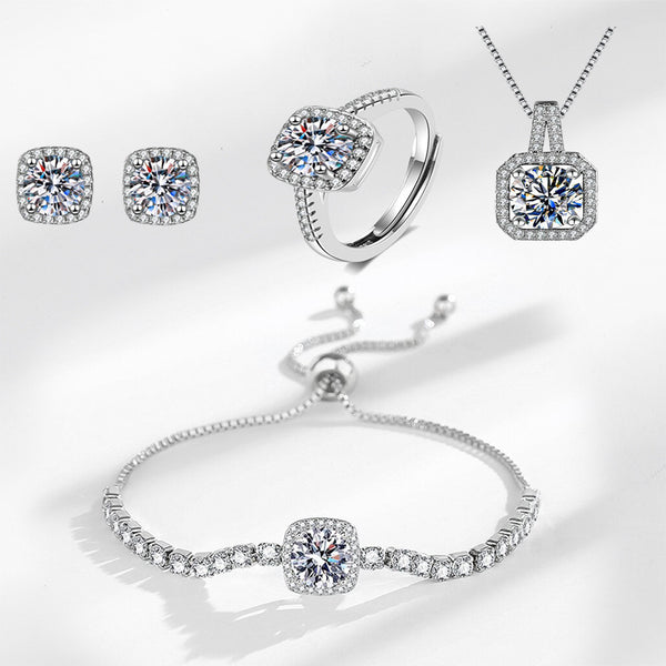 luxury set of pendant chain earrings adjustable ring and bracelet
